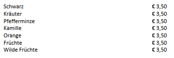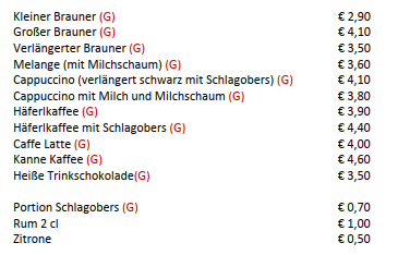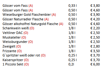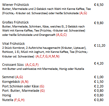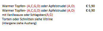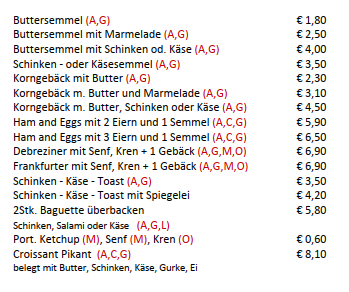In dieser Speisekarte finden Sie die Informationen über Zutaten in