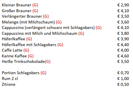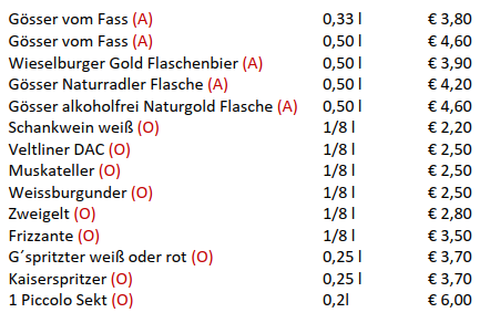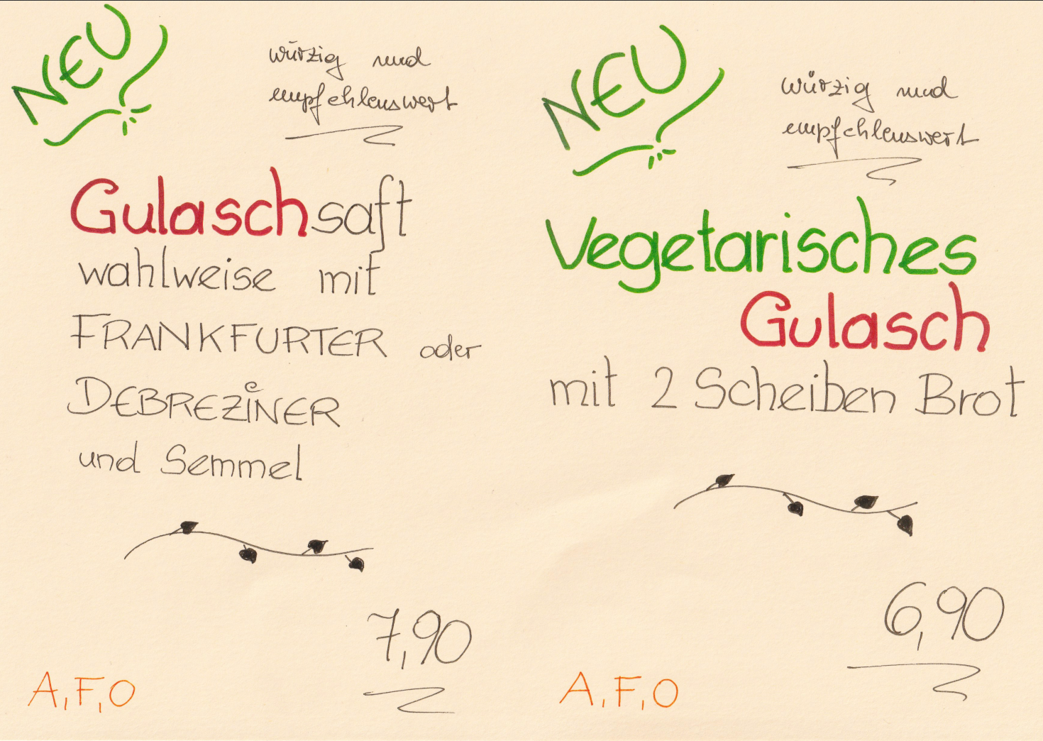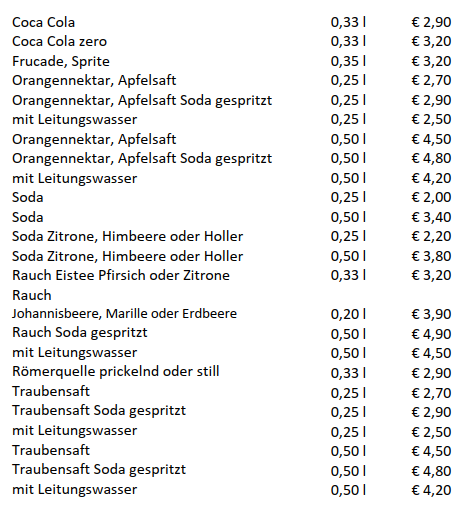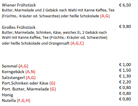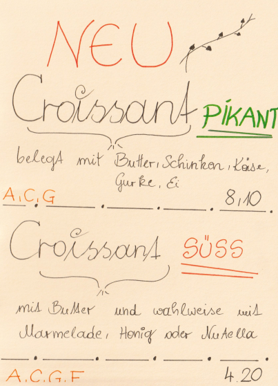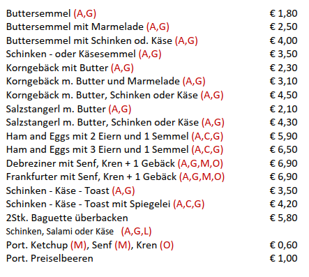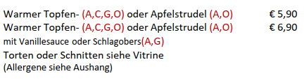 In dieser Speisekarte finden Sie die Informationen über Zutaten in