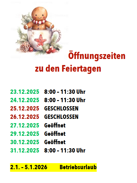Montag – Freitag: 08:00 – 11:30 Uhr &