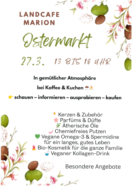 Wir freuen uns, Sie ab 07.04.2026 im Landcafé Marion wieder mit unserem köstlichen Eissorten zu verwöhnen.